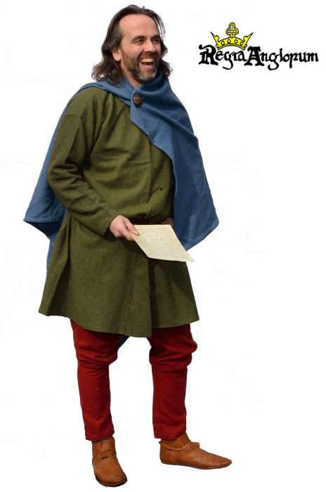 An educated freeman of some wealth as shown by the colours of his clothing. He wears the common short everyday cloak. This look can be worn at any Regia event.