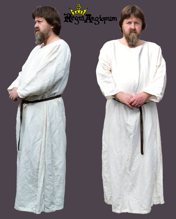 A simple style of dress is worn throughout, coming to the ankle and to the wrist. The cuff of the dress can be either worn tight to the wrist or else loose, showing the cuff of the shift underneath. Neck-holes are either round or oval, and can have a keyhole opening. Decoration, in the form of facings, embroidery or tablet weave, is generally only applied to the cuffs. Dresses are usually made from wool but can also be from linen. Tied belts of simple braid or cloth can be worn, but never belts of leather.