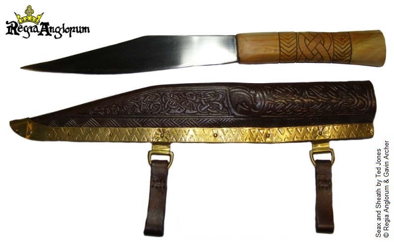 Belts can be made from either braided wool or from a leather strap. They can be simply tied or else closed by a buckle of bone, iron or copper-alloy. Belts often have strap-ends attached. In their simplest form a strap-end can be made from a simple folded strip of copper-alloy or iron. More elaborate forms are from cast copper-alloy or silver and have designs in Winchester or other art styles. A small knife is often carried in a leather sheath suspended from the belt.