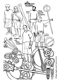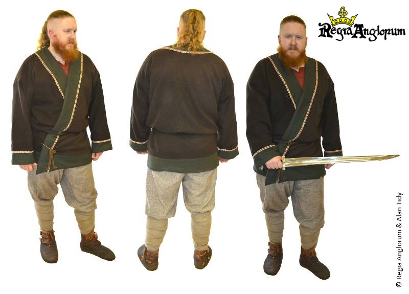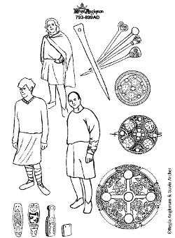 Viking men’s fashion of the 9th century varies little from that of the English. The main item of clothing is the knee length tunic and other than decorative fashion and jewellery it would be hard to tell a Viking from an Englishman. Neck-holes are either round, oval or v-shaped, and can have a keyhole opening. Decoration usually in the form of facings narrow silk strips and tablet weave can be applied to the cuffs and around the neck-hole. Vikings don't seem to have favoured embroidery although embroidered panels were imported from other countries.