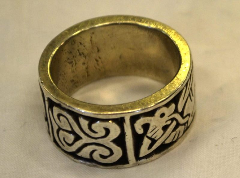 PaulA silver finger ring with Trewhiddle style decoration and black niello.