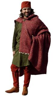 For warmth a cloak can be worn, clasped on the right-hand shoulder by ties or a large pin or penannular. Viking men do not wear disc brooches.