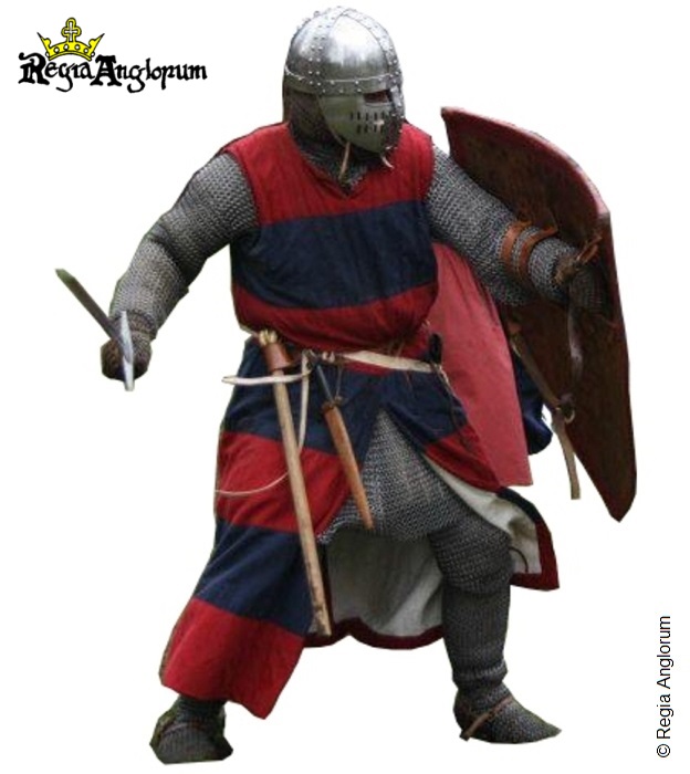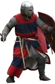 Knights on the other hand have access to the latest military equipment. Full mail shirts designed to cover the entire body including mailed mittens and foot covers. They wear full-faced helms and carry either a kite or heater shaped shield. Some are starting to wear simple plain surcoats over their armour.